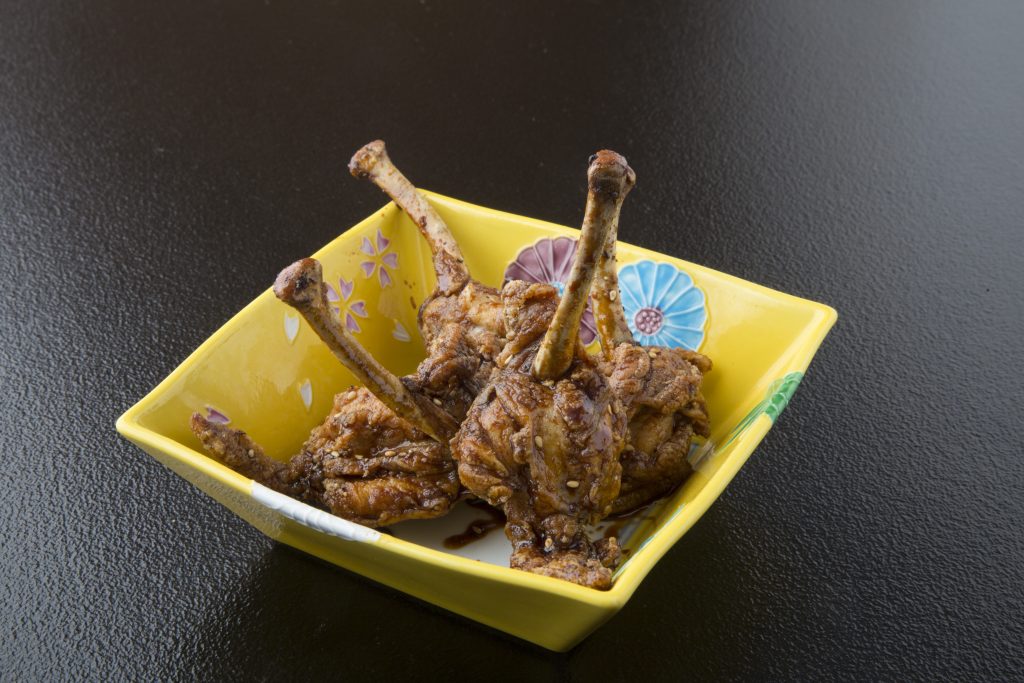 無添加の特製醤油ベースの甘辛タレ「勝ったれ」をかけて揚げたてを提供する、シンプルでありながらすべての工程と素材にこだわりを感じるマツコ・デラックスさん絶賛の手羽先からあげ。
